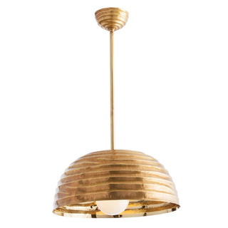 Secondly, we have the traditional farmhouse pendant turned modern. This one works well in transitional spaces because it has the shape of a traditional farmhouse pendant but is brought to life with accent of gold.
